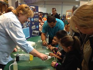 In addition to high energy, the words innovative, hands-on, and collaborative also describe the MLMS’ annual show. The group partners with school districts within 40 miles of the fairgrounds to encourage students to attend. In 2019, 4,000 children under the age of 12 attended the show, McMillin said.
