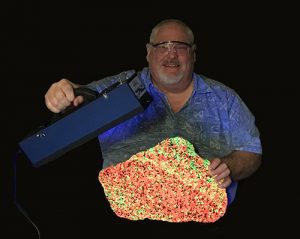 Additional notable guests and presenters who participate in the MLMS show include Dr. Alan Schaffert, organizer of the non-profit organization the Tethys Ocean Project, which is focused on introducing people to marine fossils, and this year’s exhibit will feature sharks; Richard Wade, a popular presenter at the show, whose discussions about dinosaurs typically draw crowds of 300 people and more; along with internationally known paleontologist Neal Larson who joins the ranks of experts discussion dinosaurs during this annual gathering; and Mike and Chris Whittier, owners of Rocks in a Hard Place and MLMS members, whose appreciation for fluorescent minerals began as a table-top presentation. Five years later, and the MLMS show features just not a table or a section devoted fluorescent minerals, but a 1,200-square-foot room with 18 tables of fluorescence exhibits, many of which are from the collections of Fluorescent Mineral Society members.