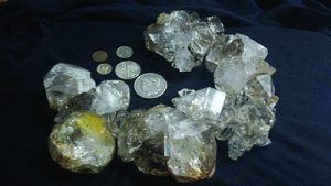 For the past several decades, he’s had a staggering collection of Herkimer specimens of a variety of shapes and colors, sitting in the basement of his home. To quantify staggering” it’s estimated to be 1.5 million carats of double-terminated quartz crystals. The crystals are named after a location where they are found, Herkimer County, New York and the surrounding area. However, New York is not the only place to find these quartz crystals. Examples have been discovered in Arizona, Norway, Afghanistan, and Ukraine, among other locales.