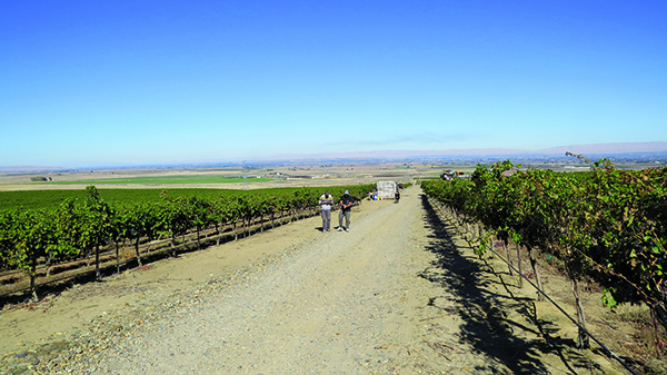 When we arrived at the spot we left the highway and started driving through a large vineyard. I continue to be amazed by how much land in the lower Yakima River Valley has been converted to wine grape production. Thousands and thousands of acres stretch to the horizon.