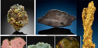 An intricate cluster of minerals from the mines of Nambia, an Imperial Topaz and a hefty 40-ounce gold nugget known as ‘Lightning...