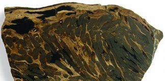 Teredo petrified wood is a peculiar petrified wood that resembles Swiss cheese with its many holes and is the state fossil of North Dakota....